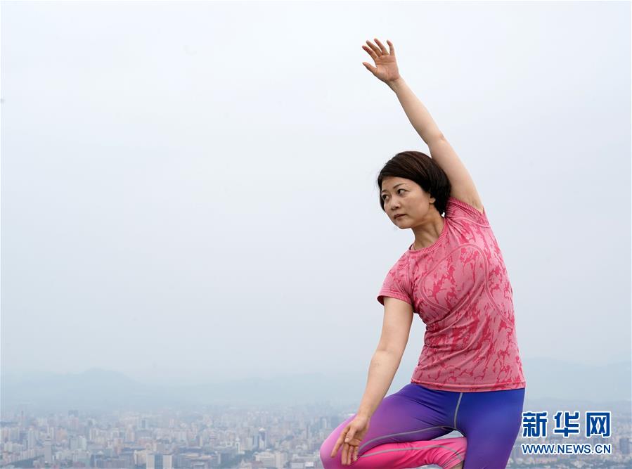 當日,數名瑜伽愛好者在專業(yè)瑜伽教練的帶領下在北京國貿大酒店70層以上的高樓層練習瑜伽,體驗高空練習瑜伽的樂趣。