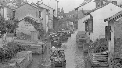 江蘇省蘇州市周莊鎮小船悠悠,載著鄉愁,劃過20世紀90年代初(新華社發),也劃過2018年的初春(新華社記者李博 攝)。