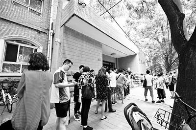 資料圖:排隊的家長。圖片來源:北京青年報 攝影/本報記者 袁藝