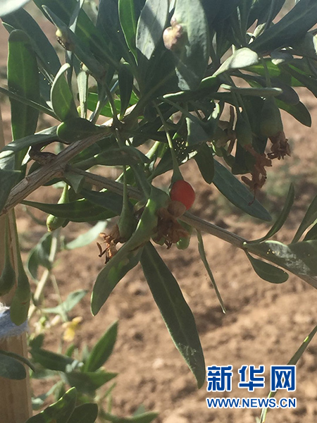 元山子鄉(xiāng)枸杞種植基地內的枸杞有的已經結了果。 新華網 雷東瑞 攝