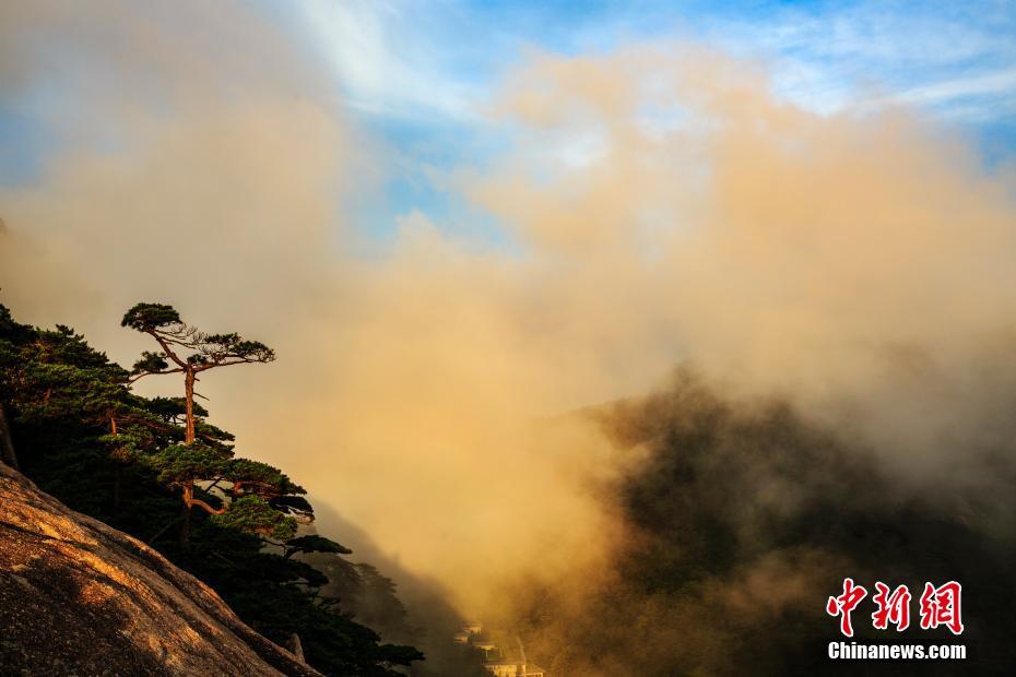 安徽黃山現云海晚霞