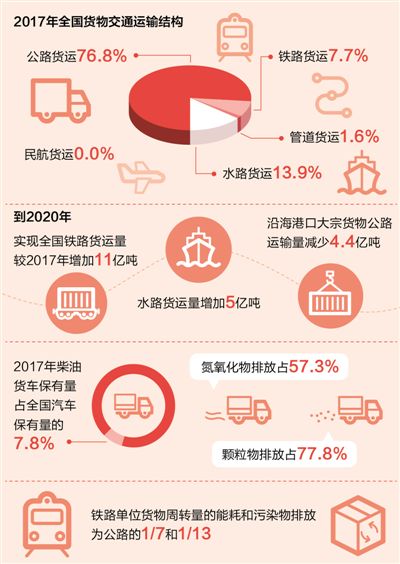 國務院日前印發的《打贏藍天保衛戰三年行動計劃》指出,要積極調整運輸結構,發展綠色交通體系。優化調整貨物運輸結構,加快車船結構升級,加快油品質量升級,強化移動源污染防治。