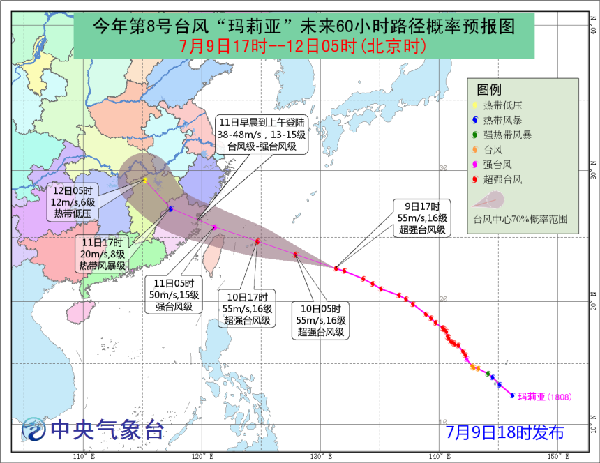 張玲:“瑪莉亞”影響最為嚴重的時段為10至11日。10日開始,臺灣以東洋面、東海南部以及臺灣海峽北部的風力會逐漸加大到10-12級,臺風中心經過的附近海域和地區的風力可達13-15級。此外,10日夜間至11日,包括臺灣、福建、浙江東南部以及江西等地將會出現大到暴雨,部分地區會出現大暴雨到特大暴雨。由于降水強度強,需要防范降水帶來的城市內澇、滑坡、泥石流等次生災害影響。由于臺風強度比較強,沿海風力大,目前正值暑期時段,在沿海地區旅游的公眾和相關部門也要做好應急預案;相關水域水上作業和過往的船舶應當回港避風,加固港口設施,防止船舶走錨、擱淺和碰撞。
