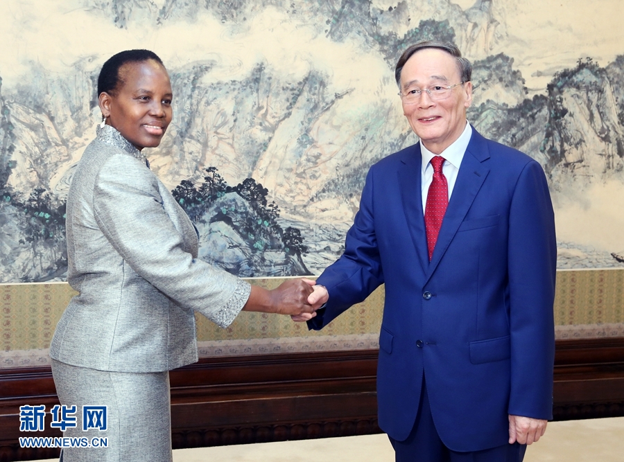 王岐山會見博茨瓦納國際事務與合作部長尤妮蒂·道