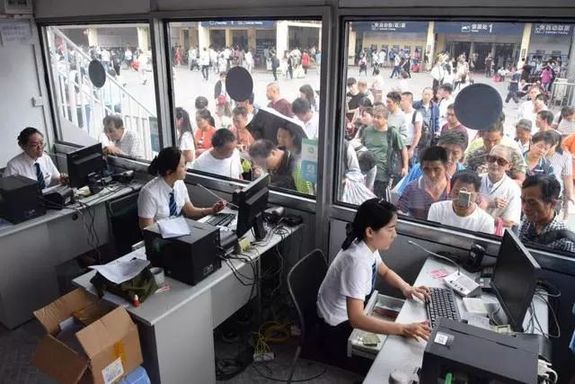 第二天凌晨,排隊的旅客少了,隊員們接著連軸轉,關了自己的窗口,坐到其他售票員的窗口。