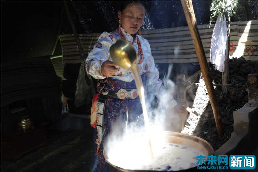 正在熬制奶茶的東科日村村民。未來網(wǎng)記者謝深森 攝