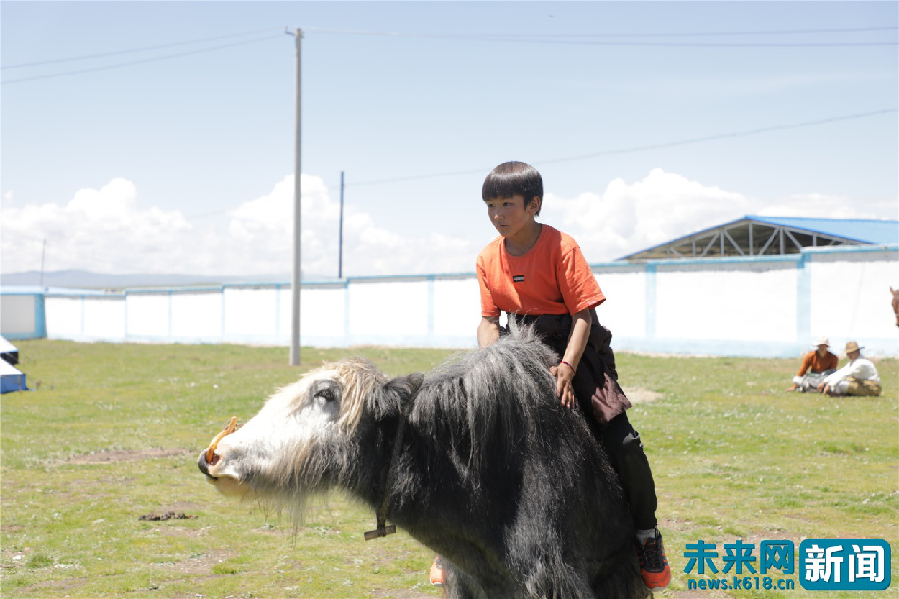 練習(xí)騎牦牛的東科日村小勇士。未來網(wǎng)記者謝深森 攝