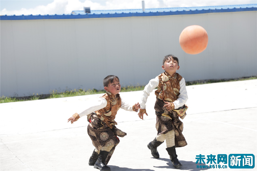 在陽光下開心打籃球的東科日村孩子。未來網(wǎng)記者謝深森 攝