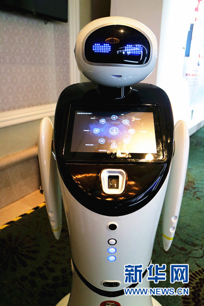 圖為地震科普展覽上的智能機器人。新華網汪亞/攝