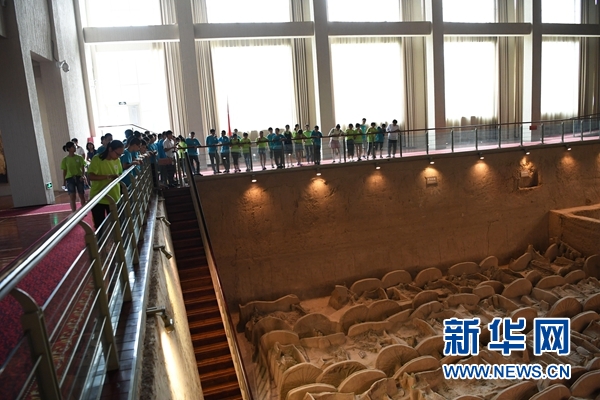 在位于曲沃縣曲村鎮(zhèn)的晉國博物館,來自山西省臨汾市的學(xué)生在參觀車馬坑遺址(7月31日攝)。 新華社記者 楊晨光 攝