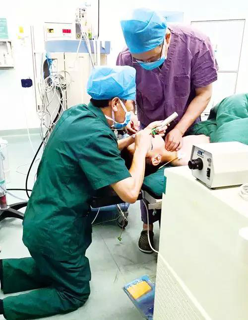 神情專注地給手術床上的年僅7歲小患者進行麻醉。