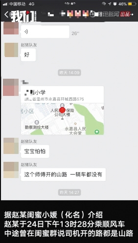 趙某的父親告訴新京報記者,女兒最近辭職正在家休息。平日里女兒很乖巧,呆在家里也很少出門。8月24日,趙某去永嘉給同學過生日,出門前還曾告訴家里人自己叫了順風車。