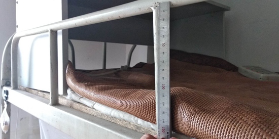 記者采訪中,便有一家聲稱為多所大學(xué)供應(yīng)過雙層上下鐵床的廠商表示,自家鐵床護(hù)欄高度達(dá)到235mm,比其他廠家產(chǎn)品高20%左右。而沒有標(biāo)準(zhǔn)傍身的腳踏板,則采用1.2mm厚冷軋鋼板經(jīng)沖壓而成。