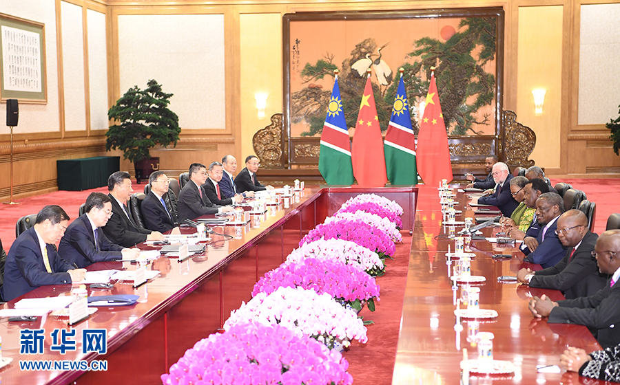 9月2日,國家主席習近平在北京人民大會堂會見納米比亞總統(tǒng)根哥布。新華社記者 謝環(huán)馳 攝