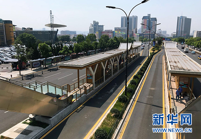公交專用道設(shè)立在馬路中央,減少了道路兩側(cè)路口以及其他社會(huì)車輛對(duì)公交運(yùn)營(yíng)的影響。新華網(wǎng) 郝多 攝