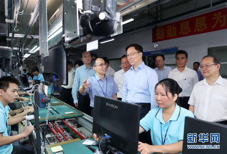 這是9月13日,韓正考察冠捷顯示科技(北海)有限公司。 新華社記者 劉衛兵 攝