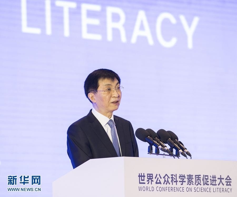 王滬寧表示,習近平主席專門發來賀信,充分肯定本次大會的重要意義,高度評價增強公眾科學素質對構建人類命運共同體的重要作用,體現了對增強公眾科學素質的高度重視。習近平主席歷來高度重視科技創新和科技事業,強調科技創新有賴公眾科學素質的提升,要把科學普及放在與科技創新同等重要的位置,普及科學知識、弘揚科學精神、傳播科學思想、倡導科學方法。中國高度重視科學普及,頒布了科學技術普及法,為中國人民提供了便捷的科普服務。