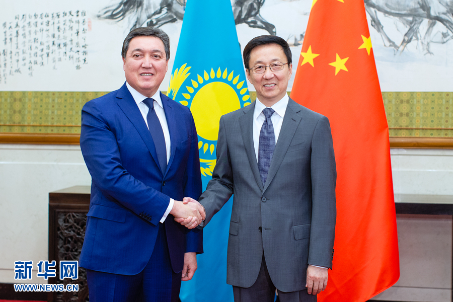 韓正表示,在兩國元首戰略引領下,中哈關系保持高水平運行,共建“一帶一路”合作成果豐碩。今年6月,兩國元首再次會晤,對兩國關系發展作出新的規劃和部署。雙方要全面落實兩國領導人重要共識,進一步加強發展戰略對接,深化產能、投資、經貿、財金、能源、互聯互通等各領域合作,推動中哈全面戰略伙伴關系不斷邁上新臺階。