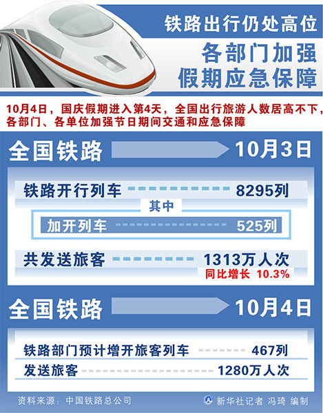 新華社北京10月4日電(記者樊曦、葉昊鳴)國慶假期進入第4天,全國出行旅游人數居高不下,各部門、各單位加強節日期間交通和應急保障。