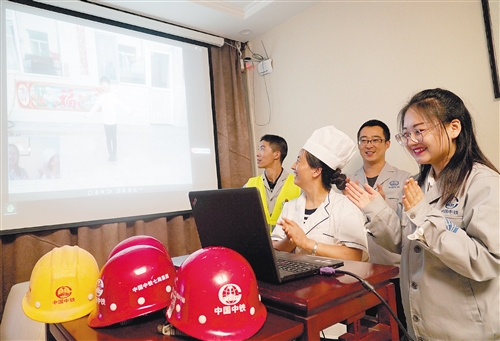 10月4日,正在建設中的北京地鐵19號線牡丹園車站,中鐵七局職工通過視頻投影設備和親人連線交流。國慶假期,許多建設者堅守崗位無法與家人團聚,項目部為他們開通親情連線,利用微信、在線視頻等多種通訊工具讓他們和遠在外地的親人視頻通話。經濟日報記者 趙 晶攝