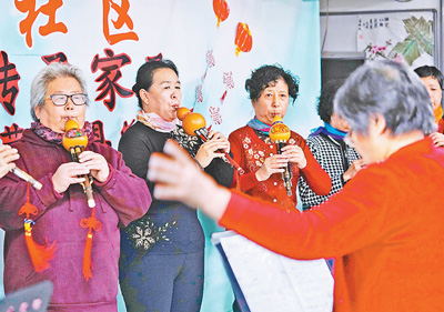 10月16日,北京市海淀區(qū)北下關(guān)街道廣通苑社區(qū)葫蘆絲樂隊(duì)在表演節(jié)目。當(dāng)日,該社區(qū)舉辦“重陽孝道,傳承家風(fēng)”活動,組織社區(qū)文藝團(tuán)隊(duì)為老人們表演節(jié)目,開展讀家書等活動,迎接重陽節(jié)。新華社記者 鞠煥宗攝