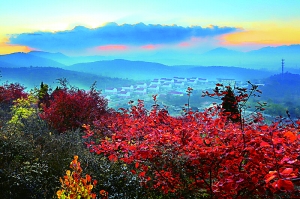 由于海拔高,氣溫低,北部西部山區的紅葉變色時間要比平原地區早10天到半個月,現在正是漫山紅遍的壯美秋色。