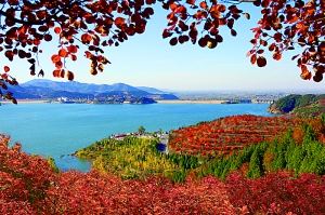 金海湖景區紅葉映襯湖水,葉美水秀景色迷人。平谷區供圖