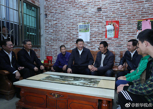 23日下午,習近平一行沿著崎嶇的山路乘車來到廣東省英德市連江口鎮連樟村,走進村公共服務站、扶貧玩具加工廠車間和貧困戶家中,同村民們親切交談。他強調,全面建成小康社會一個都不能少,在脫貧攻堅戰中,基層黨組織要發揮戰斗堡壘作用,一任接著一任抓,一仗接著一仗打,一代接著一代干,積小勝為大勝,最后取得全面勝利。要認真抓好鄉村振興戰略,在脫貧致富基礎上加快推動鄉村全面振興,實現農業農村現代化。我們相信,我國廣大農民生活一定能越來越幸福。(記者:張曉松、鞠鵬)