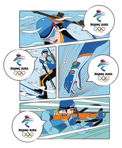入圍作品之一,含有漫畫元素的冬奧會(huì)拼圖徽章。