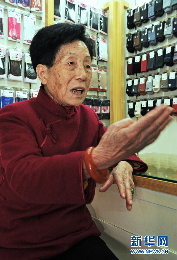 78歲的義烏小商品市場第一代經營戶馮愛倩講述創業經歷(10月25日攝)。新華社記者 譚進 攝