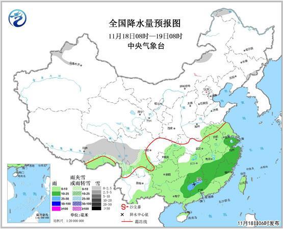 今天(18日)南方陰雨持續,濕冷加重,南京、上海、重慶等地氣溫都可能創下半年來新低。預計南方陰雨天氣將延續至下周初,需注意連續陰雨的不利影響。北方天氣恢復平靜,今明天華北中南部等地大氣擴散條件將轉差,有輕度霾,局地中度霾,需注意防范。
