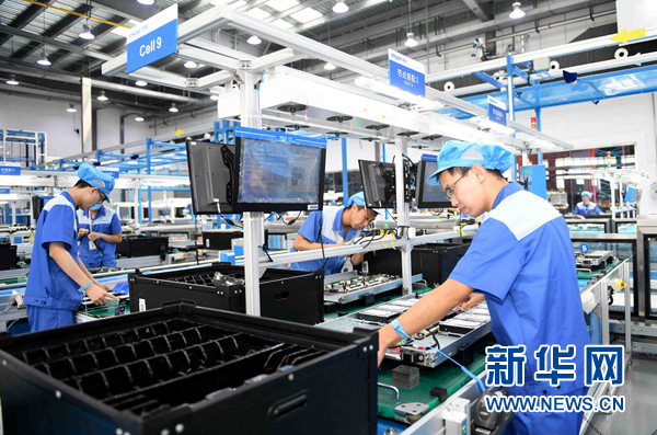 員工們在浪潮高端容錯計算機產業基地生產服務器(6月14日攝)。新華社記者 朱崢攝