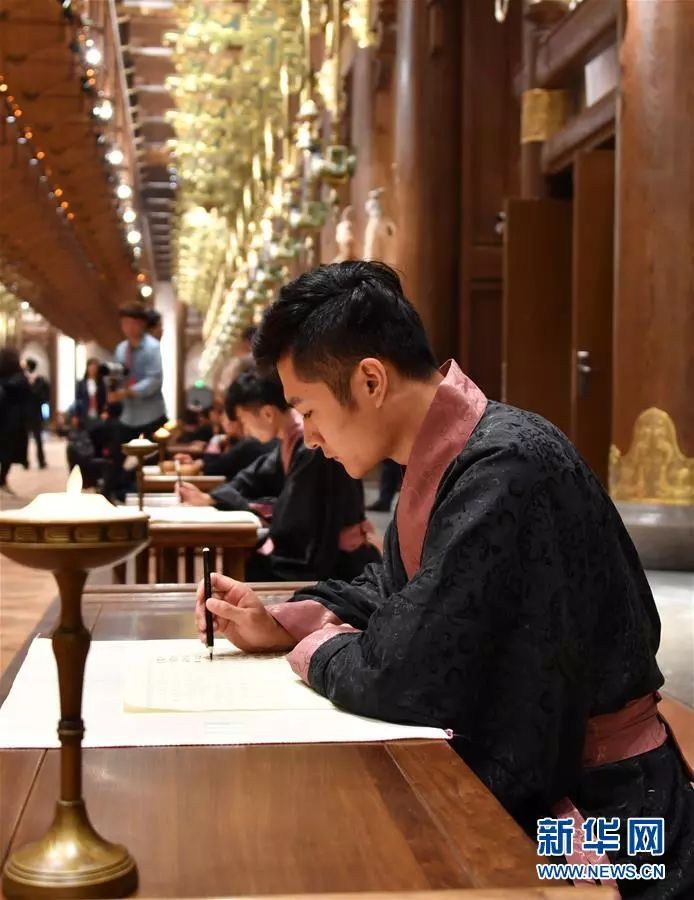 在2018中國(guó)(曲阜)國(guó)際孔子文化節(jié)上,傳統(tǒng)文化愛(ài)好者在展示傳統(tǒng)文化技藝。 新華社記者 徐速繪 攝