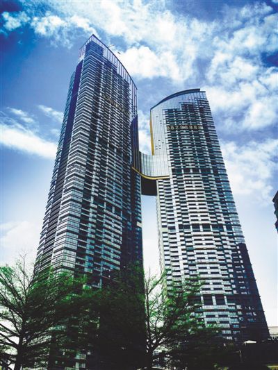 創(chuàng)新之城從不缺乏創(chuàng)新人才。在東海國際公寓施工中,要數(shù)空中連廊連接最難,要將總重約700噸的鋼結(jié)構(gòu)連廊提升至180米的高空處。經(jīng)過長達半個月的討論和研究,邵寶奎和同事最終決定采用液壓整體提升技術(shù),先在地面上將連廊拼接完畢,最后一次性提升至高空。這在工地施工中還很少使用。