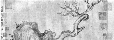 佳士得在宣傳材料中介紹,《木石圖》又稱《枯木怪石圖》,是蘇軾任徐州太守時前往蕭縣圣泉寺時所創作的一幅紙本墨筆畫。該畫作畫面內容簡潔明了:一株枯木、一具怪石,怪石后有矮竹伸出。畫作裱成手卷,其后有題跋4首,包括同代著名畫家兼書法大師、與蘇軾同為“宋代四大書法名家”的米芾。畫卷另有鑒藏印共41枚。