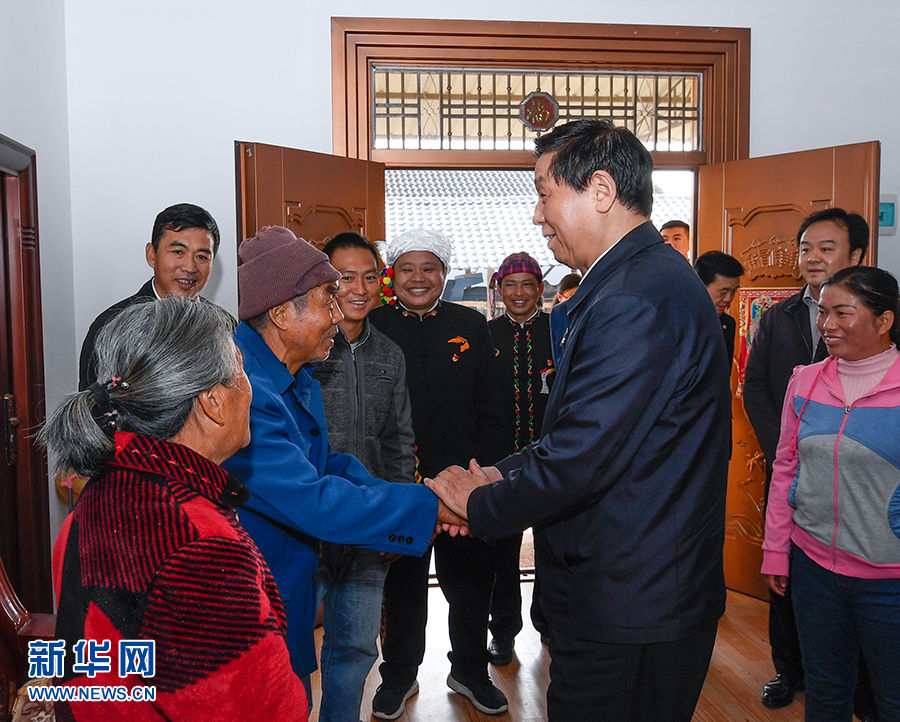 11月28日至12月1日,中共中央政治局常委、全國人大常委會委員長栗戰書在云南就制定基本醫療衛生與健康促進法開展立法調研。這是11月30日,栗戰書在云南省德宏傣族景頗族自治州瑞麗市戶育鄉戶育村,走進村民家中嘮家常、問收入、聊致富。 新華社記者 申宏 攝