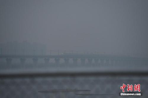12月1日0時,北京市再啟動空氣重污染黃色預警,圖為一列高鐵在霧霾中經過北京房山。 中新社記者 崔楠 攝