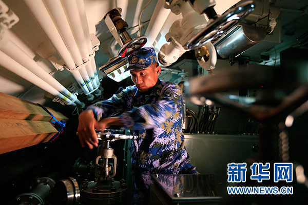 任務中,肖海生在檢查AIP系統(10月30日攝)。新華社發(練偉 攝)