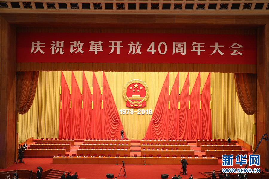 12月18日,慶祝改革開放40周年大會在北京人民大會堂隆重舉行。圖為人民大會堂大禮堂。新華網記者?郭小天 攝