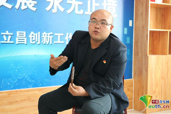 張立昌演示新型軌廓道尺與普通道尺使用區(qū)別。中國青年網(wǎng)記者 李川 攝