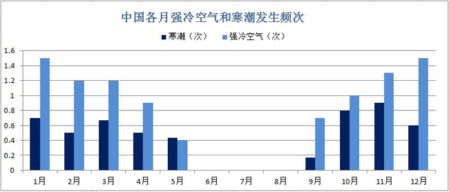 中國各月強冷空氣和寒潮發生頻次 圖片數據來源:國家氣候中心
