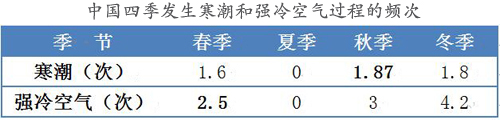 中國四季發生寒潮和強冷空氣過程的頻次 圖片數據來源:國家氣候中心