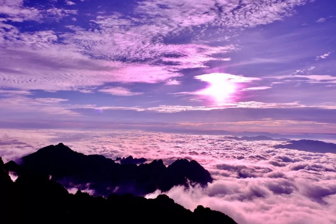 2018-09-18,黃山光明頂。朝霞映照下的云海,我猜那里住著神仙。作者:桃李杏春風