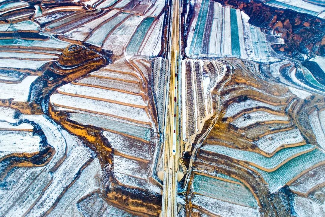 2018-01-27,山西省運城市聞喜縣。大西高鐵是經濟發展的大動脈,連接晉陜豫的橋梁。大西高鐵在聞喜縣經過的美麗瞬間。作者:風尚視覺