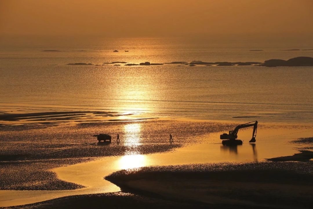 2018-12-22,乳山銀灘。清晨太陽剛剛升起,海灘已經忙碌起來,最美勞動者。作者:阿倫(震)