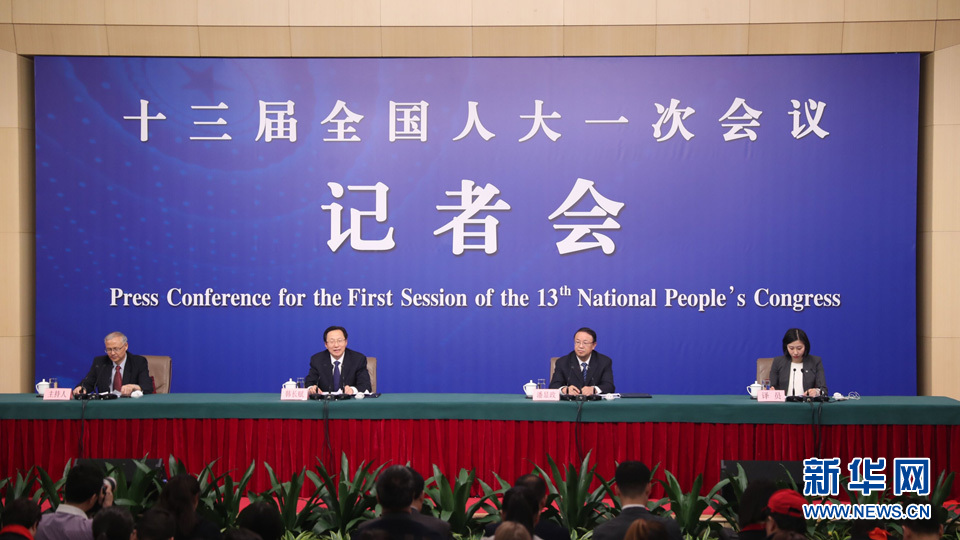 十三屆全國人大一次會(huì)議新聞中心于3月7日在梅地亞中心多功能廳舉行記者會(huì),邀請(qǐng)農(nóng)業(yè)部部長韓長賦,農(nóng)業(yè)部新聞發(fā)言人、辦公廳主任潘顯政就“實(shí)施鄉(xiāng)村振興戰(zhàn)略 推動(dòng)農(nóng)業(yè)轉(zhuǎn)型升級(jí)”的相關(guān)問題回答中外記者的提問。圖為記者會(huì)現(xiàn)場(chǎng)。新華網(wǎng)/中國政府網(wǎng) 陳杰 攝