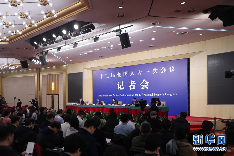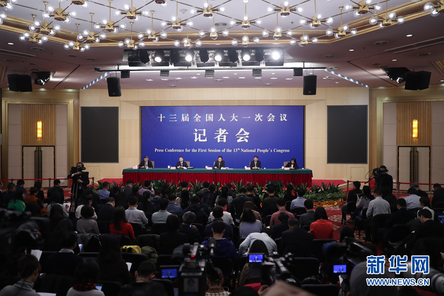 十三屆全國人大一次會議新聞中心于3月7日上午在梅地亞中心多功能廳舉行記者會,邀請財政部部長肖捷,副部長史耀斌、胡靜林就“財稅改革和財政工作”相關問題回答中外記者提問。圖為記者會現(xiàn)場。新華網(wǎng)/中國政府網(wǎng)?陳杰 攝