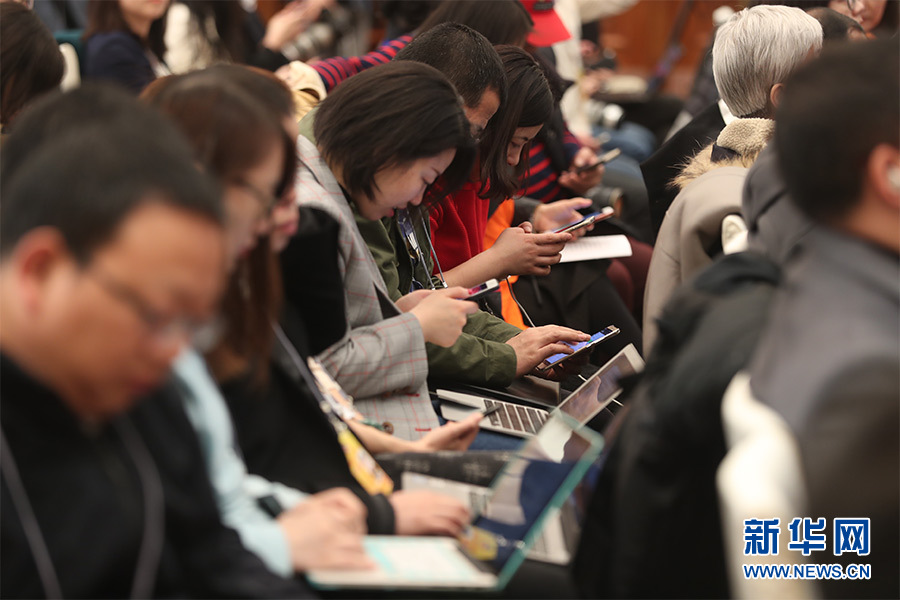 全國政協(xié)十三屆一次會議3月8日15:00在人民大會堂新聞發(fā)布廳舉行第二場記者會,邀請中央財經(jīng)領(lǐng)導(dǎo)小組辦公室副主任楊偉民,中國進(jìn)出口銀行董事長、黨委書記胡曉煉,農(nóng)業(yè)部原副部長陳曉華,全國工商聯(lián)副主席、清華大學(xué)經(jīng)濟(jì)管理學(xué)院院長錢穎一,中國中化集團(tuán)有限公司黨組書記、董事長寧高寧就推動經(jīng)濟(jì)高質(zhì)量發(fā)展回答記者提問。圖為媒體記者在現(xiàn)場。新華網(wǎng)/中國政府網(wǎng)?翟子赫 攝