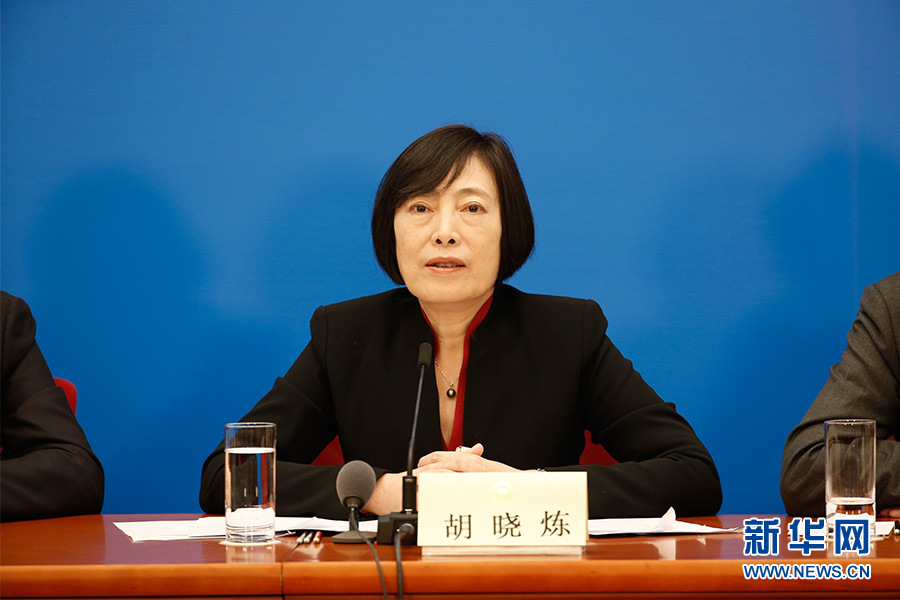 全國政協十三屆一次會議3月8日15:00在人民大會堂新聞發布廳舉行第二場記者會,邀請中央財經領導小組辦公室副主任楊偉民,中國進出口銀行董事長、黨委書記胡曉煉,農業部原副部長陳曉華,全國工商聯副主席、清華大學經濟管理學院院長錢穎一,中國中化集團有限公司黨組書記、董事長寧高寧就推動經濟高質量發展回答記者提問。圖為中國進出口銀行董事長、黨委書記胡曉煉。新華網/中國政府網 陳杰 攝
