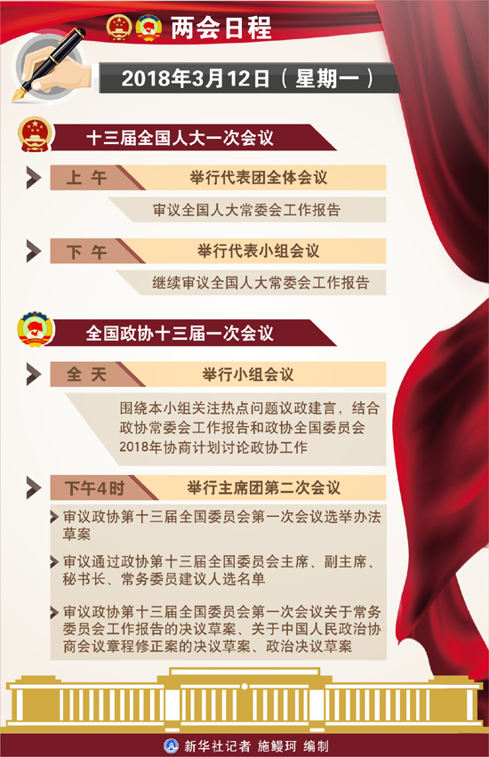 圖表:3月12日兩會日程 新華社記者 施鰻珂 編制